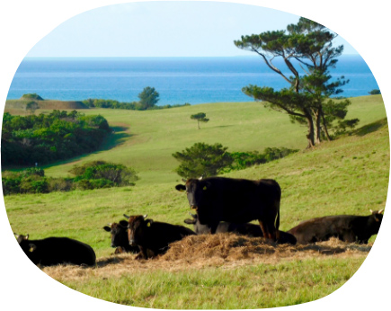 を自社牧場で飼育します。そうして誕生したのが石垣牛です。生まれてから出荷まで一貫して飼育されているからこそ安心安全であり、美味しさにも自信を持っ てお届けできるのです。