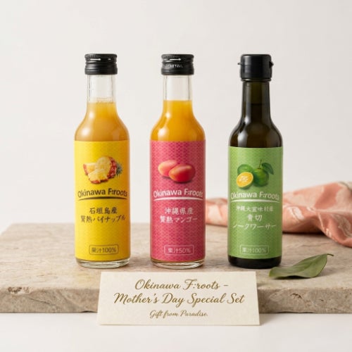 ●石垣島産 贅熟パイナップル 果汁100% 200ml石垣島産パイナップルの中でも鮮度、糖度、酸度のバランスが取れた完熟の原料のみにこだわった “無添加・無調整・夏絞り限定”の100%ストレートジュースです。 ●沖縄県産 贅熟マンゴー 果汁50% 200ml 沖縄県産の厳選した完熟マンゴー果汁50%を使用。マンゴーならではの濃厚さを残しつつ、すっきりとした美味しさに仕上げました。 ※ギフト箱に入れてお届けします。