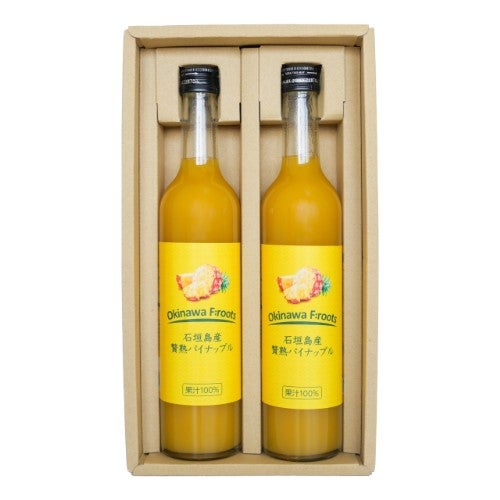 贅熟 沖縄果実のジュースシリーズの中から石垣島産パインアップルジュース2本をセットに。 内容量:各500ml賞味期限:製造日より540日※ギフトボックス入り