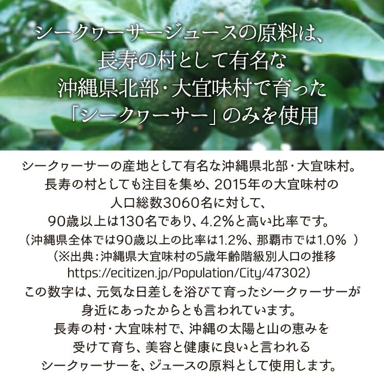 他の画像を見る 詳細を見る お気に入りに登録する 贅熟大宜味村産黄金シークヮーサージュース 500ml&大宜味村産青切シークヮーサージュース 500ml 2本セット 〈常温〉 販売価格 ¥ 4,320 税込