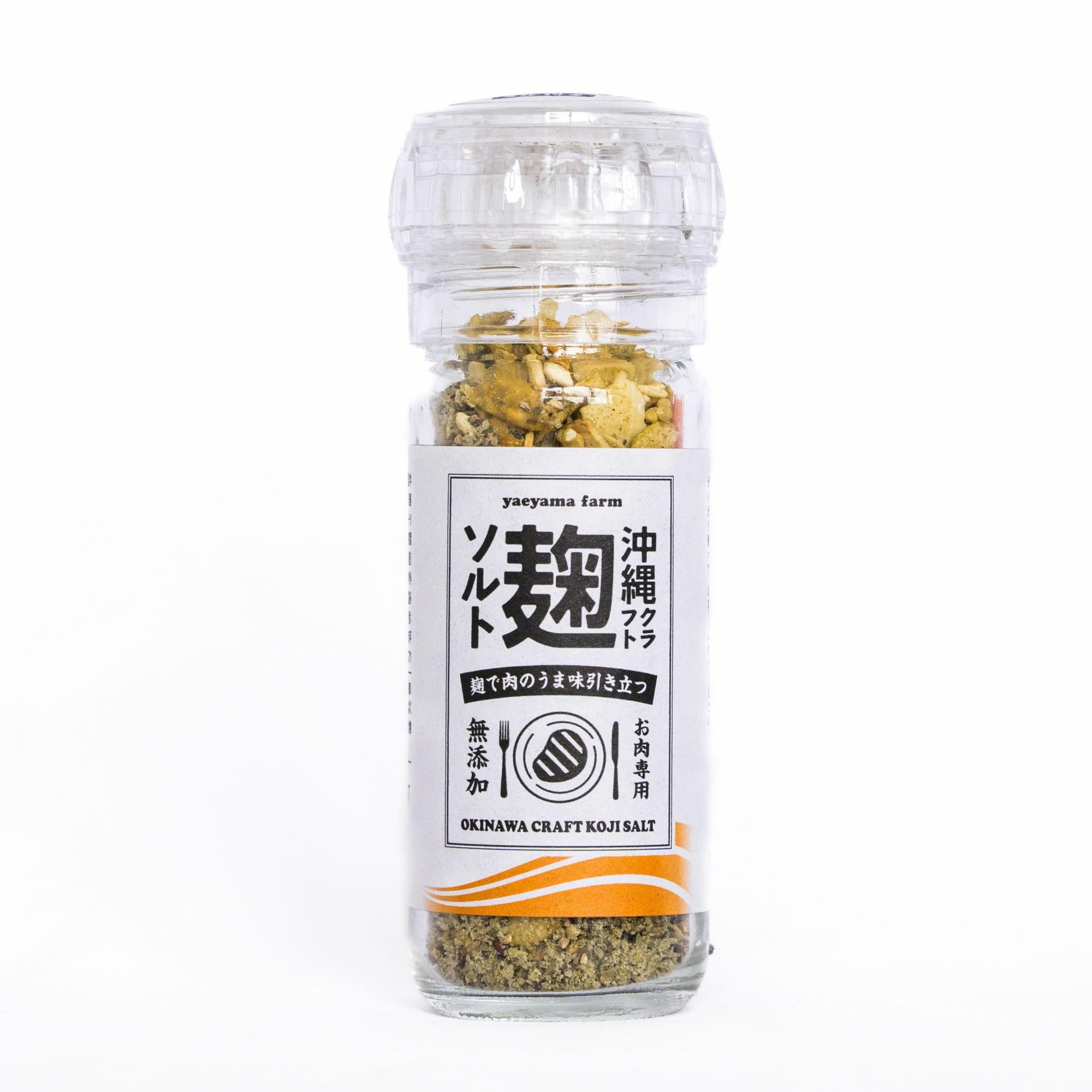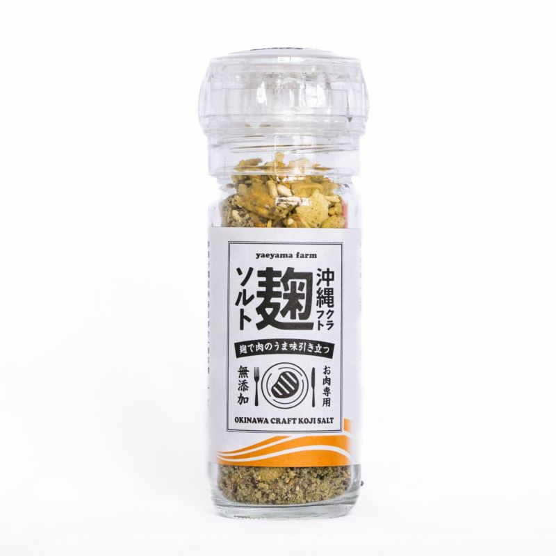 沖縄の生きた麹” で「腸活」できる、五感で味わうクラフトソルトです。沖縄県製造の塩をベースに月桃、島唐辛子、島胡椒(ピパーツ)などの琉球ハーブや国産の陳皮で香りをつけてひとつひとつ手作りしました。ミルタイプでその場で挽きたての香りが味わえます。下味なしで焼いたお肉にガリガリと削ってお召し上がりください。