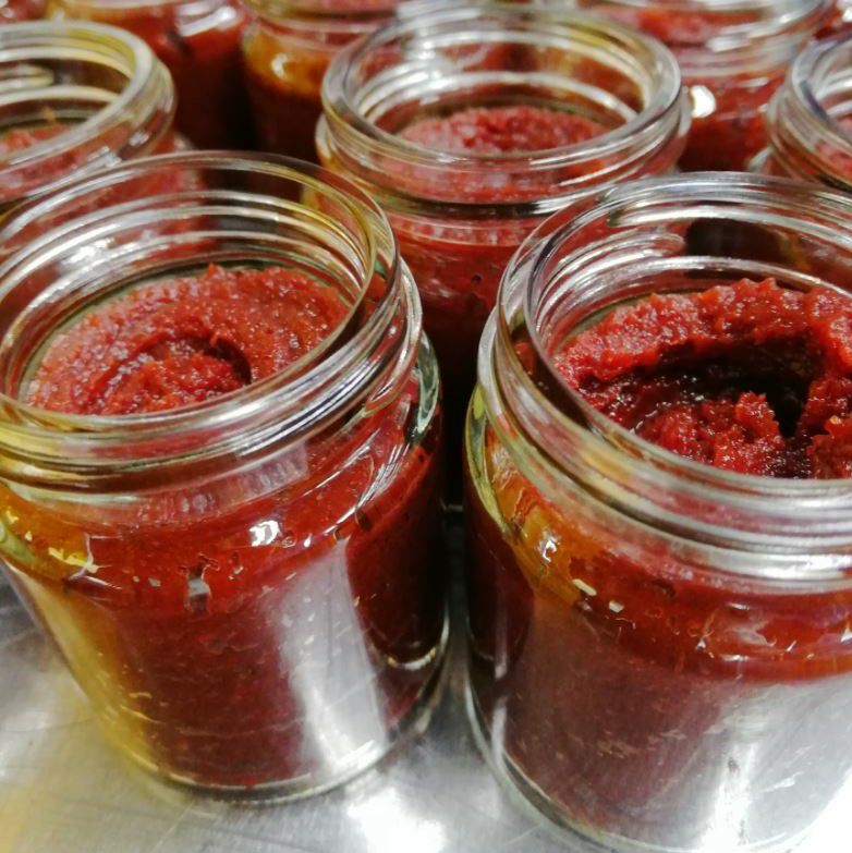 石垣島産の紅芋(沖夢紫品種)の旨みと、島唐辛子の辛さが織りなす旨辛調味ペースト。中国の豆板醤をヒントに、そら豆の風味に似た紅芋をバランス良く掛け合わせ、美味しさに深みを持たせましたお鍋、焼肉のたれ、ポン酢、マヨネーズ、スープなどに入れるとガラリと味変できます。また豆板醤やコチュジャンに置き換える料理のほか、ピリ辛モヤシなどの和え物にも最適です。