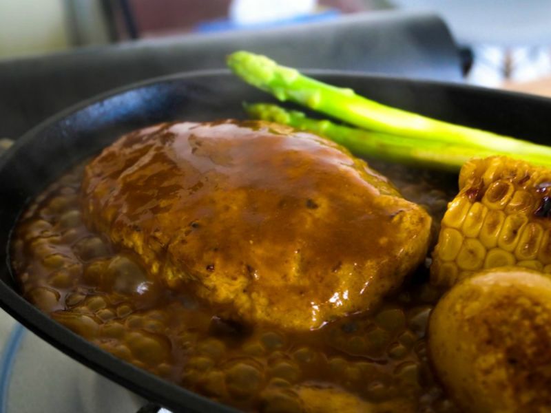 湯せんだけで高品質の味を提供。人手不足の厨房を支えます。デミグラスソースで味付けしております。やわらかい肉質でしっとりした食感、甘みがありヘルシーな脂身が特徴の「南ぬ豚(ぱいぬぶた)」を原料として使用し、ジューシーな赤身と口溶けの良い脂身を持つ南ぬ豚で作ったハンバーグです。
