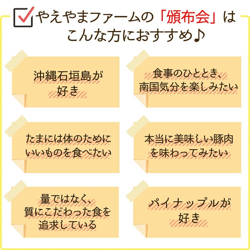 柔らかい肉質でしっとりした食感、甘みがありヘルシーな脂身が特徴の南ぬ豚。 部位ごとの味わいをご堪能ください。