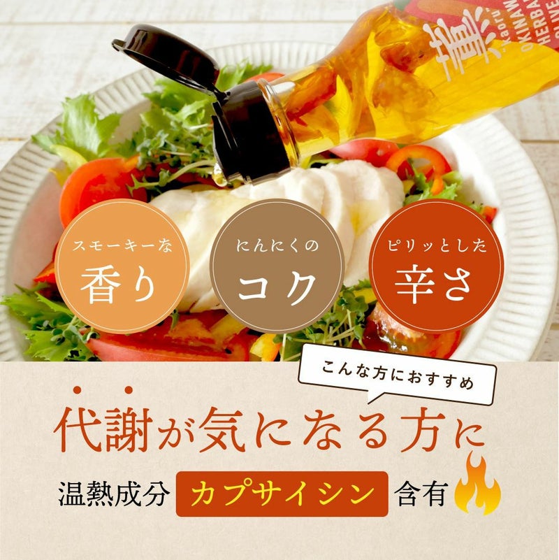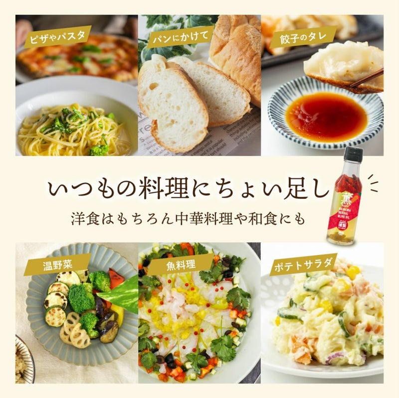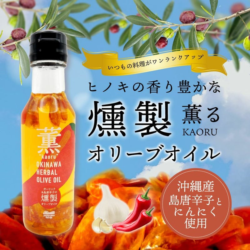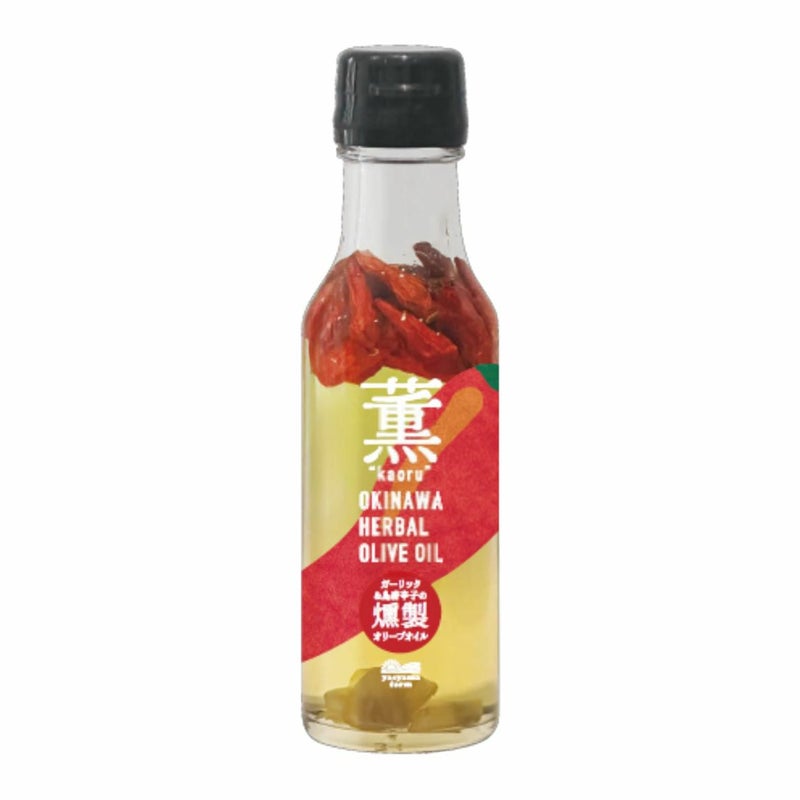 沖縄産の島唐辛子とにんにくを使用した、ヒノキの香り豊かな燻製オリーブオイルです。スモーキーな香りとピリッとした辛さ、にんにくのコクが特徴で、パスタやピザ、肉料理などに使うと料理がワンランクアップします。