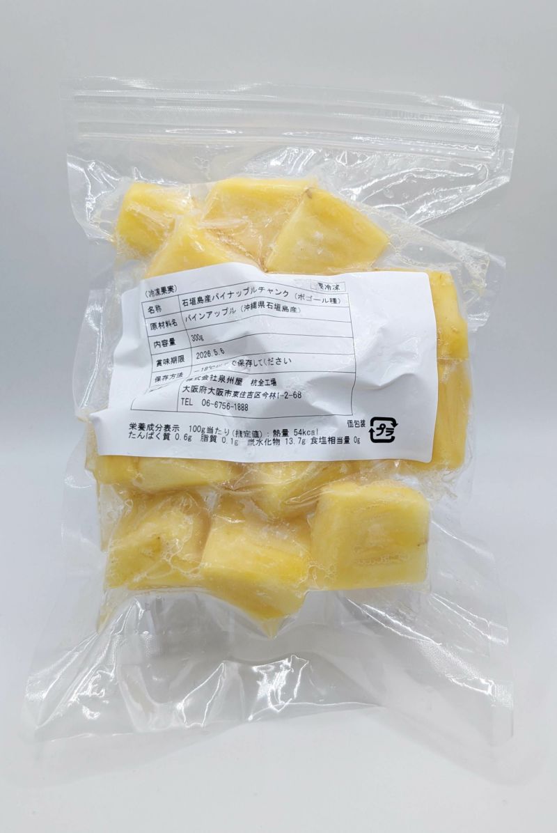 ジューシーで甘い石垣島産パイナップルのピーチ種、ハワイ種、ボゴール種の3種が食べ比べできる冷凍のカットパインです。チャック付きなので保存にも便利! ヨーグルトやおやつ・アイスと一緒に。もちろんそのまま食べても美味しい♪
