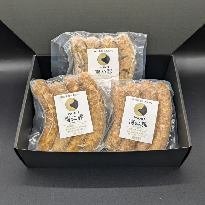 大人気の無添加ソーセージシリーズの食べくらべセット。保存料、着色料はもちろん、発色剤も一切使用せず、無添加にこだわった一品です。豚肉100%ならではのもっちり食感と、南ぬ豚のジューシーな味わいが楽しめます。 プレーン、もずく、島唐辛子と、素材ごとにそれぞれ違った味わいをぜひお楽しみください