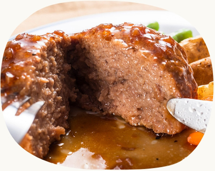 STEP1冷蔵庫で8時間程度、または流水に着けて30分程度 で解凍できます。(ハンバーグを袋の外から曲げて固い部分がなければ解凍されています。)