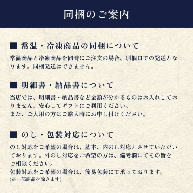 常温・冷凍商品の同梱について 常温商品と冷凍商品を同時にご注文の場合、別個口での発送となります。※同梱発送はできません。