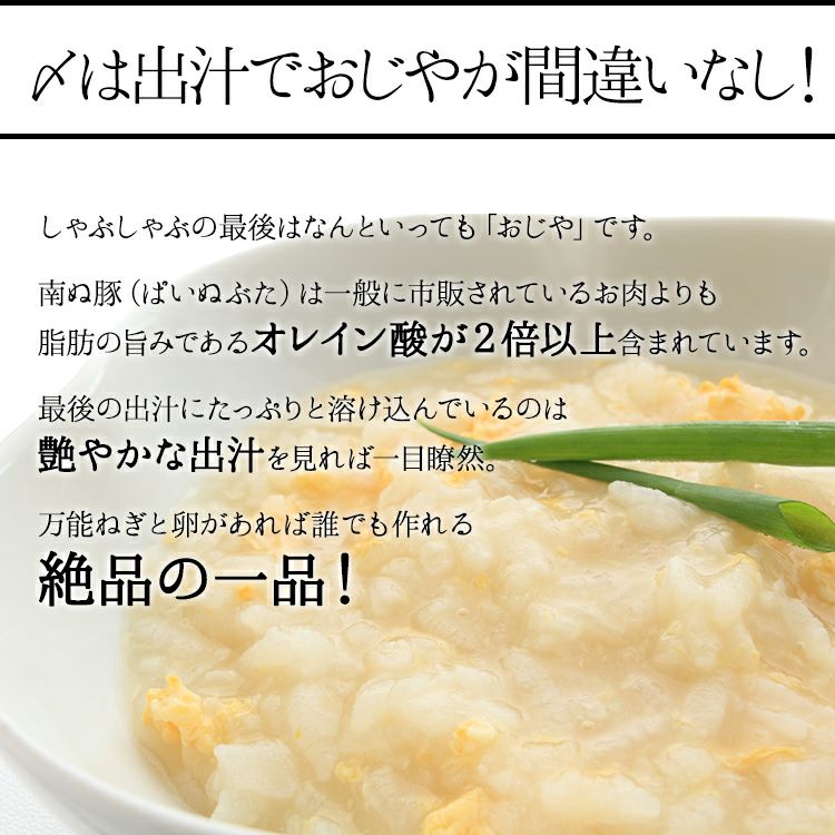 一般的に厚さ1mm以下のものをしゃぶしゃぶ用としています。 しかし南ぬ豚(アグー豚)は、ダイレクトに豚の旨みを味わっていただきたいという思いと、しゃぶしゃぶ用としての食べやすさも重視したいという思いから、あえて1.5倍の厚さにスライスするこ とで、口の中に入れた時の甘みが際立つよう工夫しています。 豚肉の臭みが少なく柔らかくてジューシーな肉だからこそできるこだわりです。