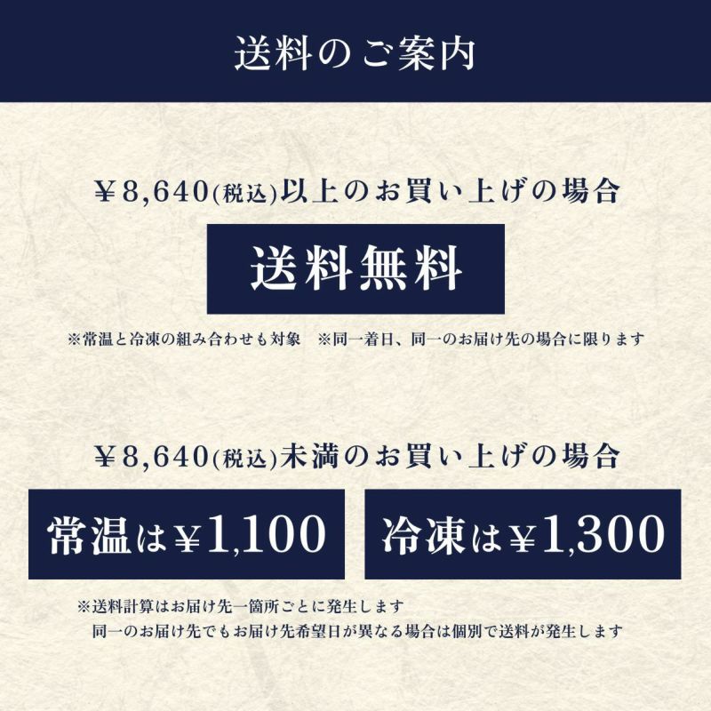 常温・冷凍商品の同梱について 常温商品と冷凍商品を同時にご注文の場合、別個口での発送となります。※同梱発送はできません。