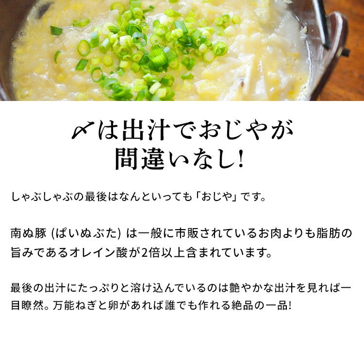 やえやまファーム独自のパイナップル発酵飼料を与えた南ぬ豚ならではの部位ごとの味を堪能いただけるよう、バラ、ロース、肩ロースをしゃぶしゃぶ用セットにしました。