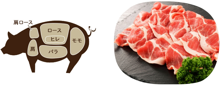 肩の後ろから腰付近までの、背骨の両側の部位。キメが細かく肉質は柔らかで、赤みと脂身のバラ ンスがよく、旨みが魅力の部位です。 うまみの強い部位なので、しゃぶしゃぶやとんかつがおすすめです。
