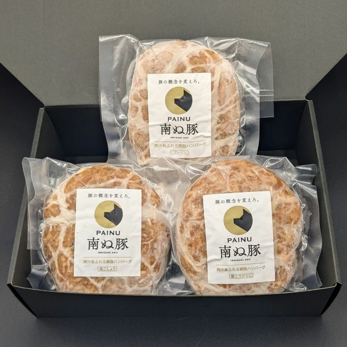 他の画像を見る 詳細を見る お気に入りに登録する クール便 累計販売実績250,000個突破したハンバーグの食べ比べセット アグー豚(F1種) 南ぬ豚 網脂ハンバーグ3種食べ比べセット(3種×各2個) ☆冷凍☆ 販売価格 ¥ 4,752 税込