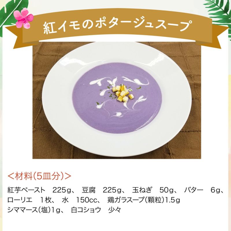 上品な甘さが特徴の石垣島産の紅芋「沖夢紫」を使いやすいペーストにしました! 様々な料理やスイーツにお使いいただけます。